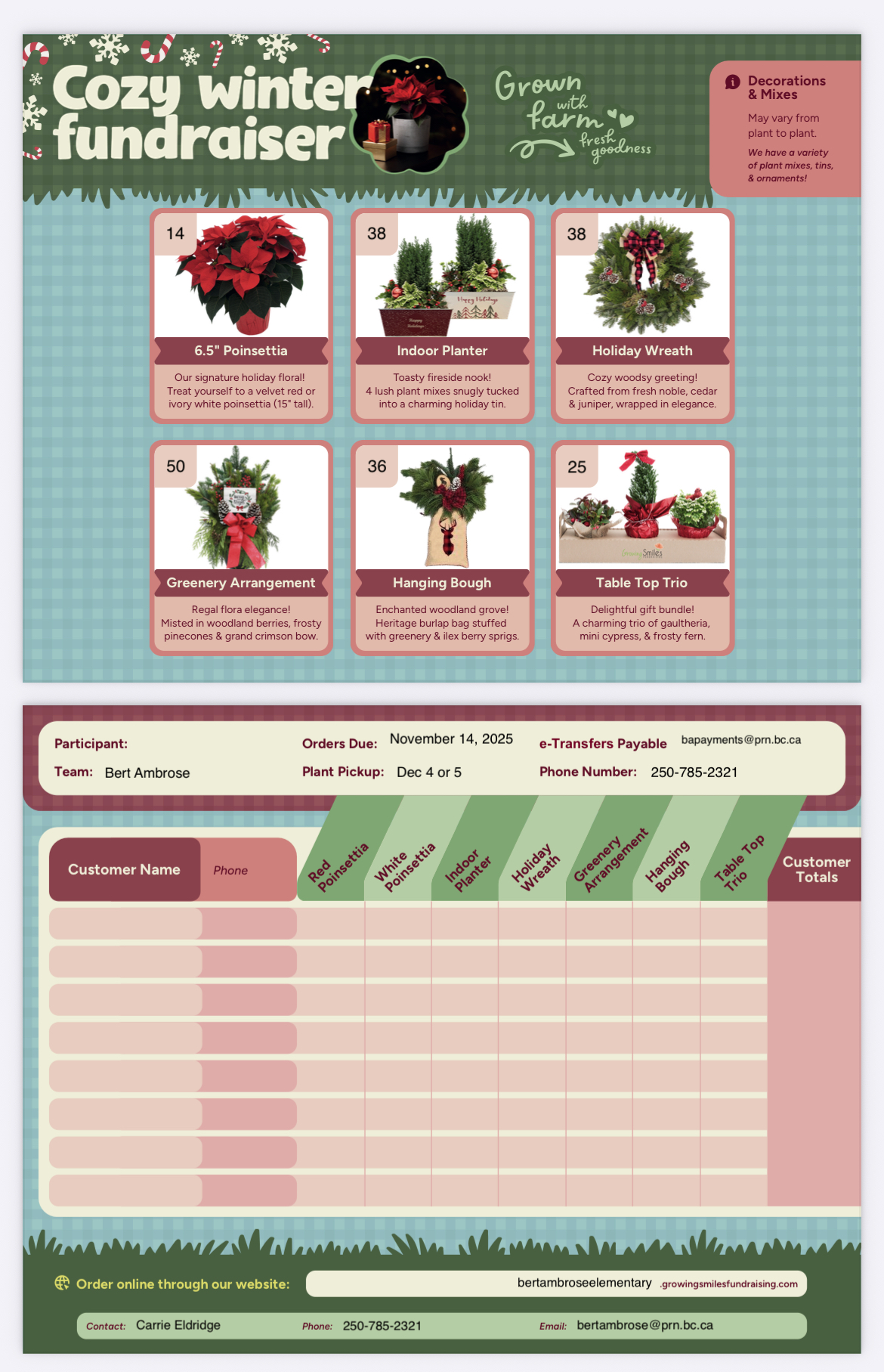 Order Pick up: December 4 or 5 β please wait for an email or text before coming to the school to pick up.